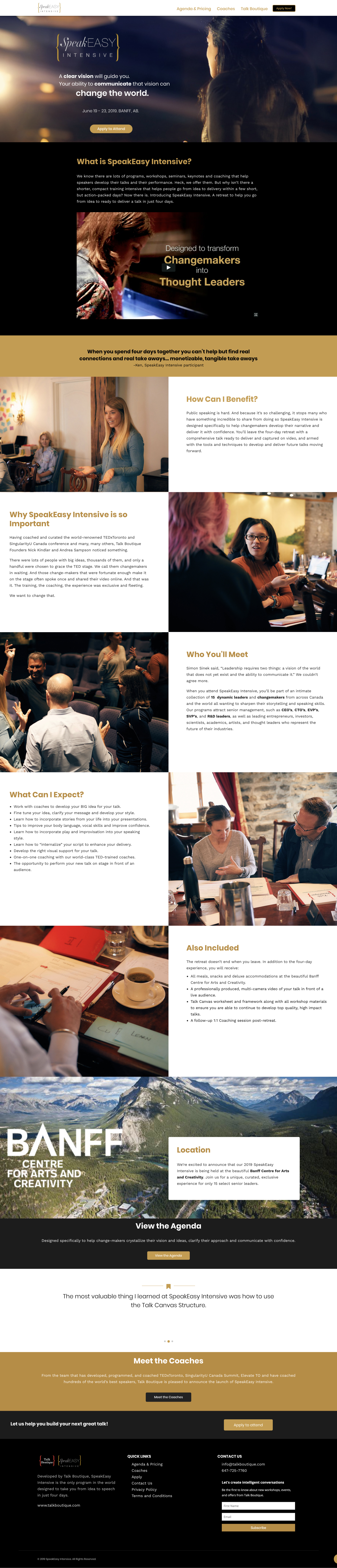 Talk Boutique holds an annual exclusive retreat for leaders, at the beautiful BANFF centre for arts and creativity – focussed on helping attendees go from idea to ready to deliver presentation in 4 days.